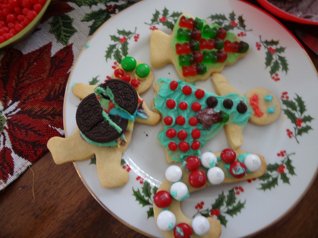 We made a whole bunch of vegan sugar cookies and vegan frosting and pulled together all sorts of topping options for our cookie decorating party! Here are a few of our fabulous creations!